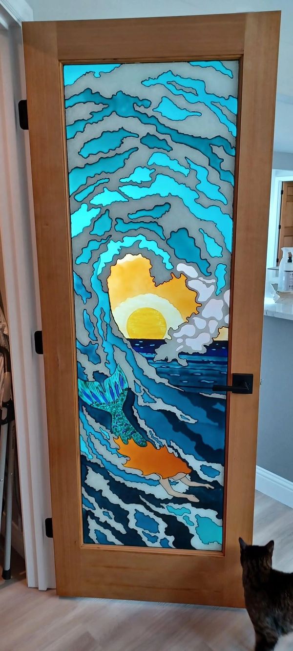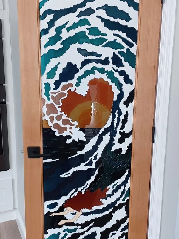 Custom Stained Glass Pantry Door – Ocean Wave Design